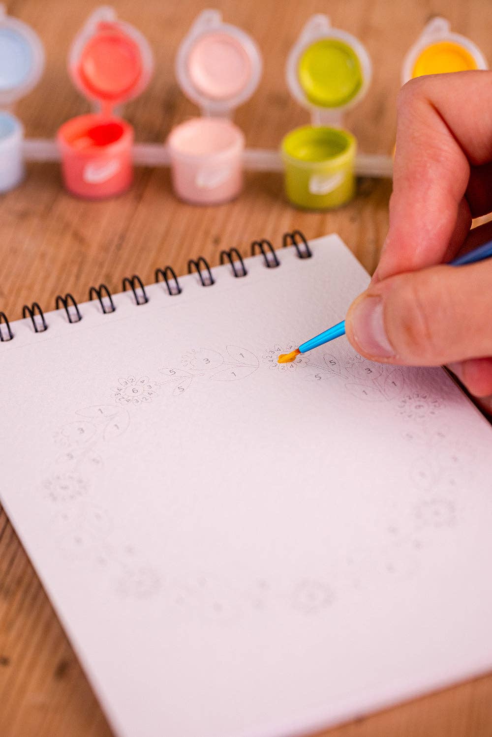 • 6 godets numérotés de peinture écologique à base de résine d’origine végétale à 95% biosourcée